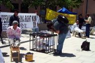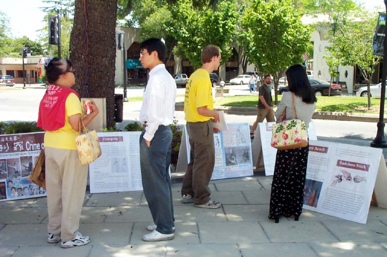 一位山景城的居民唐尼(Tony)表示,他开车经过这里,看到学员,所以特意停车前来观看。他说他曾到过中国,并不知道那里正发生着迫害。当学员告诉他,在中国有一千多名法轮功学员被证实被折磨致死,还有很多仍被关押在精神病院、劳教所等受到酷刑折磨,这里展示的只是冰山一角。他激动的说:“我相信这一切!这是恐怖主义行为。我能做些什么?”