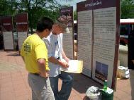 很多人看了展览后纷纷签名表示支持法轮功弟子和反对迫害,并表示很遗憾你们不接受捐款。学员们就告诉他们可以写信给总统、议员表达对法轮功的支持,还可以把法轮功的真象讲给更多的亲朋好友,以这些方式来帮助法轮功学员。了解了真象的人们也都纷纷表示其他的组织和团体应该都来帮助你们。