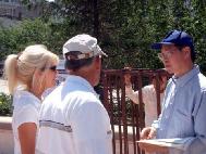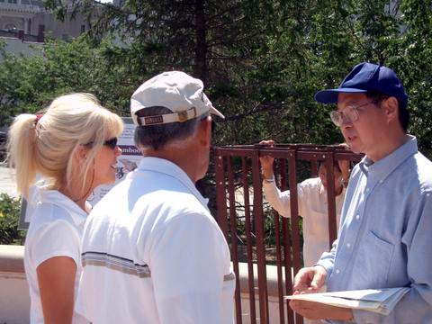 在广场附近有一个卖热狗和冷饮的流动车,车主一边做生意一边向路人介绍酷刑展的内容和目地。了解了情况的路人又再向其他人介绍展览的内容和发生在中国的对法轮功的镇压。