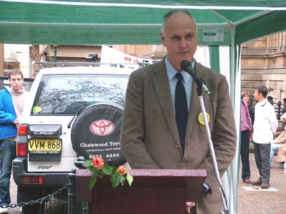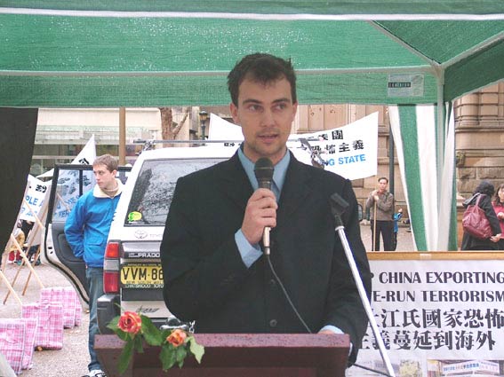 澳洲法轮大法佛学会发言人John Deller指出江氏对法轮功学员迫害的恐怖主义行径伤害了澳洲公民的人身安全,他希望所有善良的人们支持法轮功学员和谴责罪恶,因为这已关系到了每一个人。