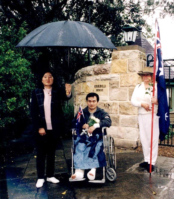 请愿的民众大部分是澳洲的公民,也同时是法轮功学员。他们平和的捧着鲜花和信件从悉尼情人港步行和乘车而来。总理府邸前,他们静静的站成一排。澳洲的冬季寒冷萧瑟,此时,又下起大雨。风雨中他们默默的静立着,没有一个人离开,他们真诚的希望澳洲政府和所有善良的人们为了澳洲的祥和安宁、为了人类的美好共同谴责江氏集团在南非枪击法轮功学员的恐怖主义行为并制止其在世界蔓延。