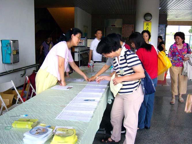 这次研习公文教育局一核准下来后,报名很快的超过了预定人数,结果我们就在会场后面加了四排椅子。每一次大法的活动都是透过很多学员合力完成,这次的研习也是如此,有的学员拟定研习计画及课程内容,有的分发报名表到每个学校、每个办公室,有的准备洪法研习材料,有的布置会场,专家学者们更不辞辛苦,南来北往搭飞机、搭火车到各个研习会场做修炼心得分享,有的负责教五套功法,有的照相录影,有的作纪录,有的整理活动报导。充分表现大法弟子整体协调配合的良好心性,大家就一份心─愿更多的有缘人能得法修炼進来,愿参加的人都能明白法轮功真象,愿台湾的校园因“真、善、忍”而成为一片净土。