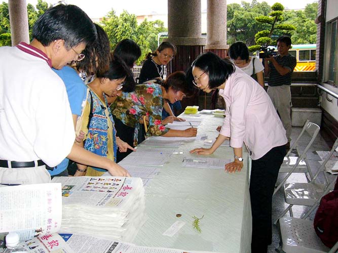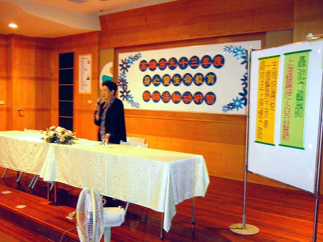 台湾在教育界服务的法轮功学员越来越多,大部分是透过每年寒暑假全省教师研习营得法,或是亲眼目睹学校中修炼法轮功的同事身心巨大的转变而想学炼。高雄市成功启智学校的两位法轮功同修也是参加了两次教师营,深受法轮功的益处,很想介绍给他们学校的校长、同事,希望能让更多的教师从大法中得到身心灵的健康。他们利用中午午休时间教刘校长五套功法,刘校长也很想進一步了解法轮功而促成这次教师研习营的因缘,在2004年7月5日~7月9日办理为期五天的研习。刘校长特别亲自送公文到教育局会见七科科长和教育局长,表达办理这次研习的重要性和意义,让很多教育界的教职员工能安心的请公假,又有研习学分来参加研习。