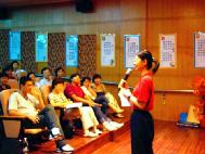 乐群国小许素香主任:两周前得知这个研习讯息,原抱著怀疑及迷惑的态度,如今透过研习已澄清对法轮功的误解且深知法轮大法的好。在这五天中,让我认清自己往后的方向。解开心中经常担忧的事----如何教养小孩,我第二天就帮小孩子报名参加高雄法轮功儿童夏令营。
