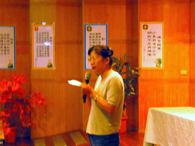 家长王阿凤女士:原7月3~4日坐骨神经的毛病又痛起来,到阮外科医院拿了药,5日参加研习时脚是一跛一跛的很痛,但第一次学功时,感觉好很多,第二次学功时竟然都不痛了,药也没吃,法轮功真神。7月8日原本预计去溪头玩,我不去了。我要好好了解怎么修炼法轮功,法轮功的研习,机不可失。