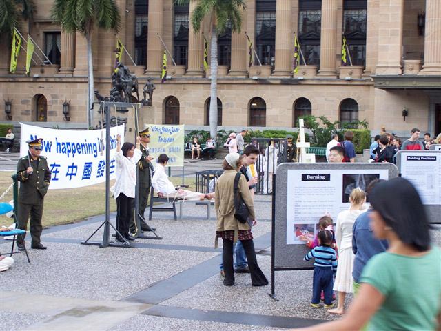 有位过路人,看了展览后说道:“这个展览影响力太大了,我以前对这些情况一无所知,那些展示的酷刑告诉我们此时此刻有人正在被这样的酷刑折磨着,令人震惊。我感到我们应该更多的了解这些情况,并作些积极的努力。”