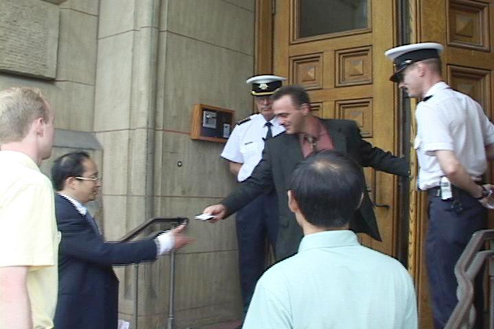 在当天的活动中,一桩诽谤案的受害者——乔-契布卡通过扬声器向过往的游客讲述着自己的经历:加拿大驻多伦多副总领事潘新春因为在“多伦多星报(TORONTO STAR)”上发表诽谤法轮功学员的信件,被安省高等法院判诽谤成立,并罚款1000元。