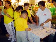 有一个年约五或六岁的小朋友和妈妈一起在等车,听学员向民众讲法轮功被迫害的真象后,也想签名,但是他不会写字,就去叫妈妈,连那么小的孩子都能明辨是非,伸张正义,江氏集团真是禽兽不如。有两个聋哑人士,一直在摊位停留很久,两人比手划脚讨论很久,虽然无法沟通,但他们在看完所有资料后就签下大名。