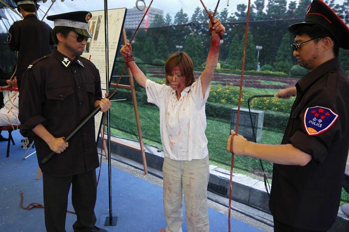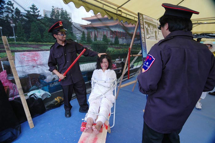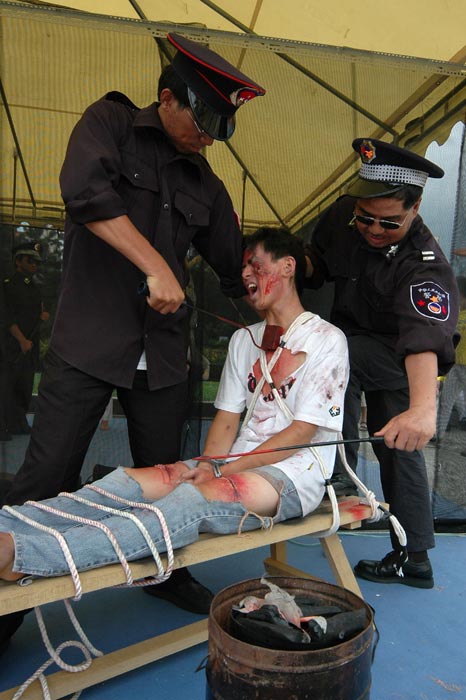 为了让民众更了解中国公安、劳教所、法西斯洗脑班等处迫害法轮功学员所使用的具体手段,这些真象迫害展包括,