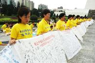 【明慧网2004年7月19日】2004年7月17日下午,数千名台湾法轮功学员云集台北市中正纪念堂瞻仰大道,举行“7.20”迫害、呼唤善念系列活动,吁各界发挥正义良知共同来关注中国大陆法轮功学员五年来被残酷迫害的血腥事件。