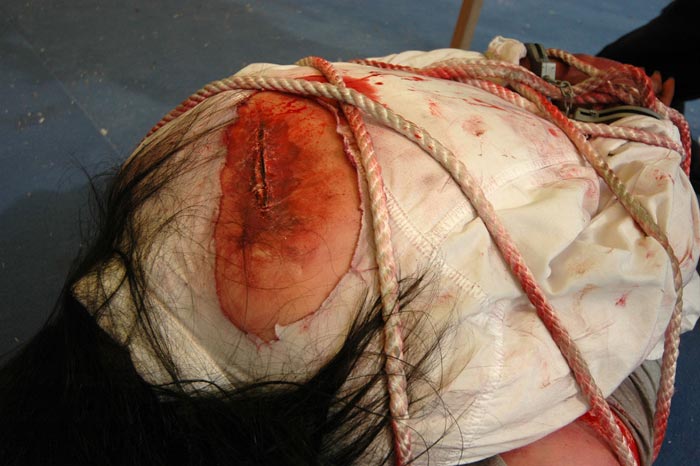 10.绑刑:警察用力给法轮功学员捆绑,把身体捆叠在一起,长久保持一个姿势,全身痛苦。