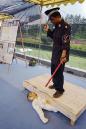 11.老虎凳:脚下被垫砖多块翘起,警察将杠子压在坐老虎凳上的法轮功学员,然后膝盖被用木棍或绳子向下狠压,受刑者的两腿轻者一年不能走路,重者双腿就废了。