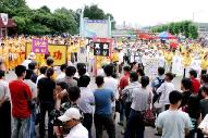 ![]() 真人酷刑演示 | ![]() 游行队伍中,学员们向世人展示部分被迫害致死的大陆法轮功学员照片 | ![]() 法轮功学员组成的整齐的腰鼓队 |