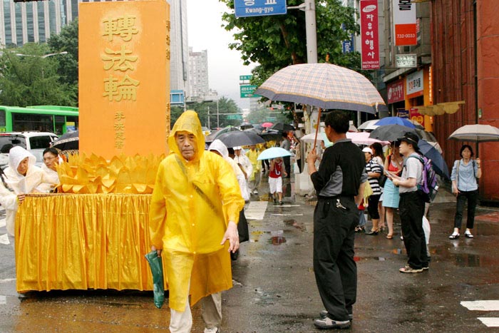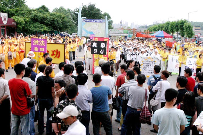 这次活动遇到了各方面的干扰,特别是中国大使馆又一次伸出了黑手向韩国有关部门施压,不允许我们搞酷刑演示,在同修们整体强大的正念面前,特别是韩国学员表现出的大善大忍再一次感动了韩国警察,他们不但允许了我们搞酷刑演示,而且自始至终一直帮我们维持秩序。