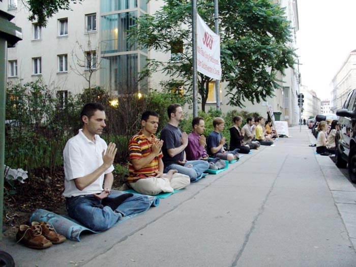 奥地利学员在中国驻奥使馆前谴责江氏集团雇凶杀人