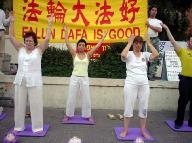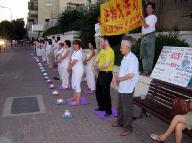 法轮功整整5年了。以色列法轮功学员在特拉维夫市,中国大使馆对面呼吁停止迫害并告诉世人真象。