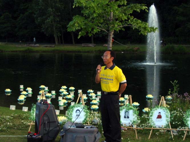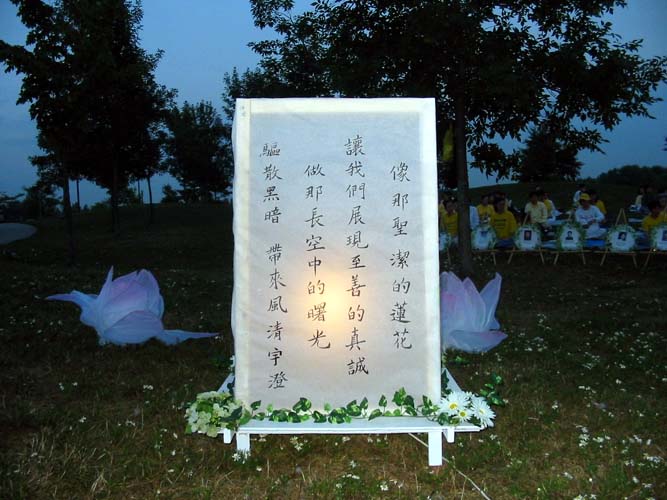 一位去年移民到加拿大,母亲在国内正遭受残酷迫害的新学员曾晓南在悼念会上倾吐了他的肺腑之言。透过这盏盏莲灯,小曾想告诉大洋彼岸的母亲,在经历过这么多的磨难之后,自己终于也走入了修炼的行列了,和母亲一样信仰和维护真善忍的宇宙真理。并且也想告诉母亲自己一定会尽最大的努力和海外的法轮功学员一起呼唤世界上的所有善良的人和正义力量,使母亲早日堂堂正正的走出牢房,到加拿大和他团聚。