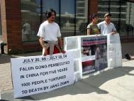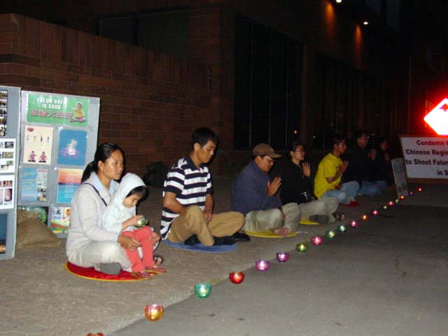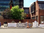 ![]() 法轮功学员中领馆前和平请愿 | ![]() 法轮功学员中领馆前和平请愿 | ![]() 法轮功学员在中领馆前烛光守夜 |