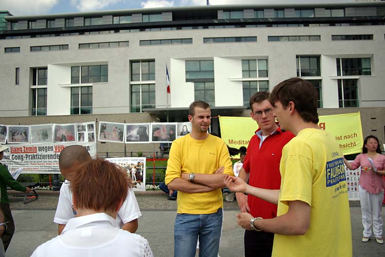 一位来自汉诺维的十来岁的女中学生看着图片便向学员询问更多的真象,她几乎无法相信这样残酷的迫害会在现在的中国发生。她说她要将这个事实告诉她的老师,她要向老师请求让她向她所有的同学介绍这个事实。她希望能立即和在汉诺维的法轮功学员联系,以更多的帮助受迫害的法轮功学员。