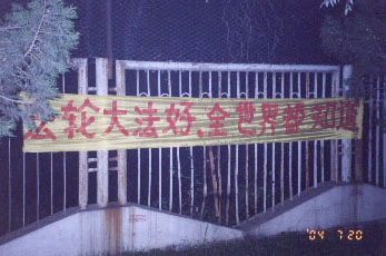 东北某市大法弟子挂横幅庆祝世界法轮大法日