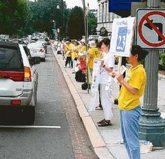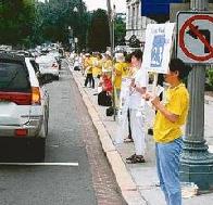 【明慧网2004年7月29日】世界日报7月28日报道,中国大陆[江氏]政府取缔法轮功已满五周年,来自全球各地的数千名法轮功学员上周齐聚华府,以群众活动呼吁全球继续向中国大陆政府施压。