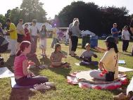 除了与游客们共同庆祝这一节日外,法轮功学员还在宽敞的草坪上,摆放着“正法之路”系列图片展,向游客讲真象、揭露迫害。同时,为了展示大法的美好,法轮功学员一直坚持着功法演示和扇子舞表演,相对于热闹喧嚣的乐队表演,法轮功学员的宁静、祥和及优美给游客们带来了新的感受。游客们或是静静的观赏,不时发出“真漂亮”的赞叹;或是拿起摄像机,把场面录了下来;或是走進法轮功学员中,要求合影留念,等等。