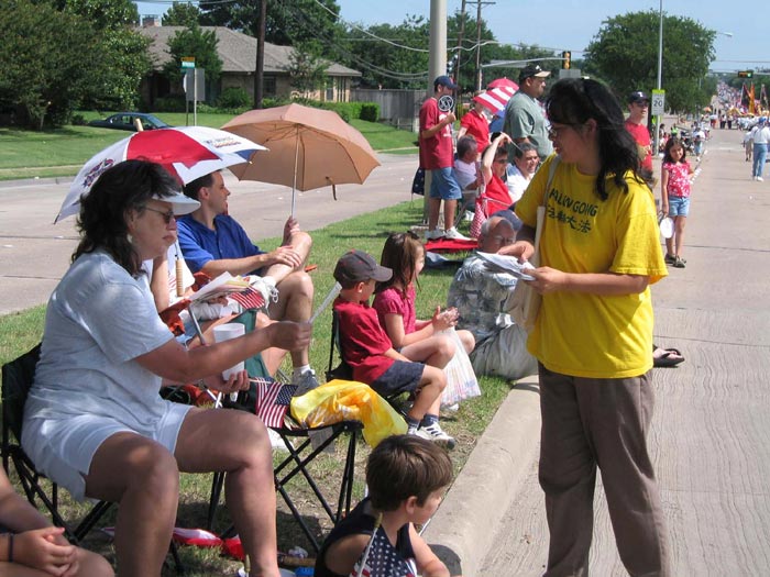 2004年7月3日,法轮功学员顺利参加了在纽约曼哈顿华埠举行的庆祝美国独立日的华人大游行,这是法轮功学员在纽约华埠第一次和其他华人团体一起游行庆祝美国独立日。游行的组织者一直回避法轮功学员的正式申请,纽约的政府官员、媒体、监督机构和民众对此事表示了极大的关注。一位协助游行的高级警司表示:“我很高兴他们(法轮功)参加了这个游行,他们的表现很出色,他们是非常棒的一个团体。”