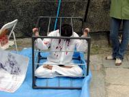 一位来自加拿大的中年女士说,她尽管知道这场迫害的存在,但亲眼目睹迫害的实景还是第一回。她在现场拍摄了许多演示现场的照片。她问学员她回到加拿大以后,可以为此做些什么。学员告诉她说,希望她尽可能的把这场迫害告诉更多的善良人们,她连声说“我会的,我会的。”