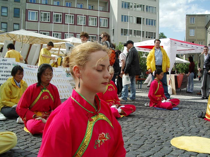 游行结束后,学员炼起了五套功法,很多人跟学员做了進一步的交流。在法轮功的展台前,亦挤满了想了解真相的人们,人们不断的询问有关炼法轮功的事宜,许多人在观看了国内法轮功学员遭受酷刑的展板之后,纷纷主动在“法办江××”签名簿上签名。后来学员又应邀上舞台表演舞蹈“莲花颂”和功法,并向观众介绍了功法和法轮功在中国受到残酷迫害的情况,其他学员不断散发传单和关于曾庆红在南非雇凶杀人的最新的消息。