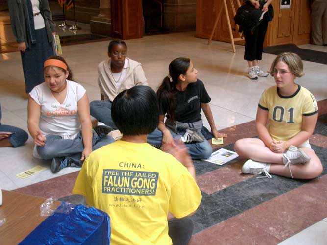 一群台湾高雄医学院护理系的访问学生也来到州政府大厅参观,当他们收到大法传单后,有人即说这是法轮功,我们台湾也有而且到处都有人在炼,其中一名学生说,在台湾法轮功受到政府及人民的支持而且炼功的人相当多。他对江氏集团迫害法轮功相当不解。当学员向他解释了详情后,他表示,实在没道理迫害这样一群好人。