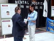 一位带着三位女孩子的残疾人母亲走过展板,当学员把真象资料递给她们时只有妈妈接了,而她的孩子们似乎没什么反应。于是,学员们便把什么是法轮功和中国是如何残酷镇压炼功人,以及有信仰者(包括基督徒)在中国如何受到镇压讲给她们听。渐渐的,孩子开始感兴趣起来,并问了许多问题。最后,她们真正感受到我们在这儿所做的一切不仅是为了法轮功学员,而且也是为了所有的人,她们从心中开始敬仰大法修炼者。