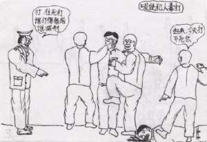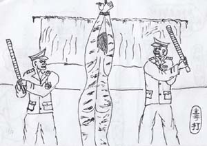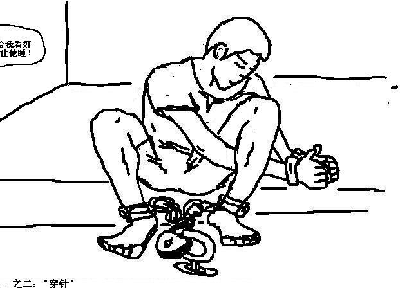 法轮功学员因不放弃自己的信仰在中国大陆的看守所、劳教所等非法关押场所遭受到的酷刑之一:锥刑。