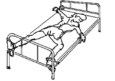 此种酷刑被恶警称为“燕儿飞”:人的双脚被分别铐在病床下端的左右,为了让人双臂没有活动余量,在分别铐人的左右手时,故意将左右手以伸展的极限位置左上右下(或左下右上)的铐上,以达到不让人动的目地。法轮功学员经常被这样铐在床上长达一周或数周,甚至有长达四个月的。