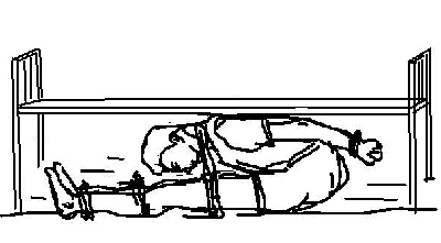 这样的刑罚使人只能长时间保持变形而固定的姿式,无法改变一点姿式,更不用说翻身了,大小便无法自理。长此以往会产生严重的肌肉损伤,精神烦躁,疥疮湿疹,极难忍受。见过此刑的人,无不为其残忍程度而震惊的!