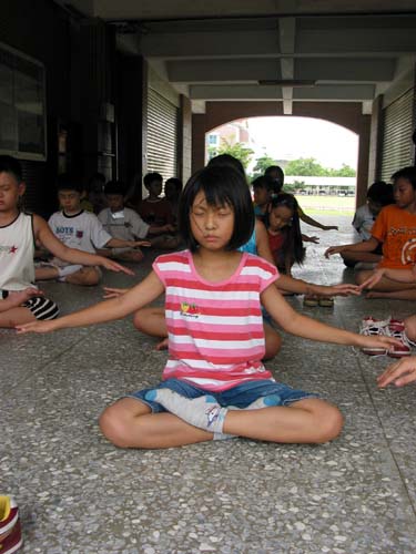 ![]() 小朋友很快学会双盘 | ![]() 认真学炼第四套功法 | ![]() 全体合影 |
