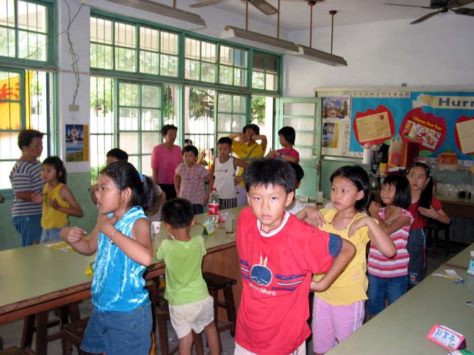 整个活动除了午餐自费外,其余完全免费,法轮功学员自动自发的提供教具、书籍、饮水、点心等。清早才七点多钟,即看到家长们带着天真活泼的小朋友准时来报到,学员们个个展开双臂,满脸笑容带领小朋友到活动教室,准备展开为期三天之夏令营课程。