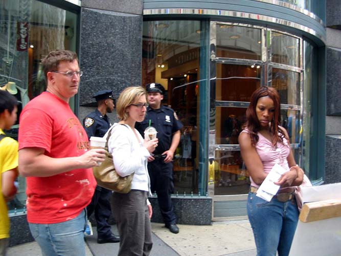 周末的纽约曼哈顿,依旧是行人如梭,车辆行人繁忙不已,显得有些嘈杂。在六十大街与列星顿(Lexington)十字路口的一角,集聚着约一二十人的样子,好像在展示着什么。那些来来往往的行人们,都会情不自禁的停下脚步来看一下,而其中有一些驻足观看的人,脸上则充满了震惊。