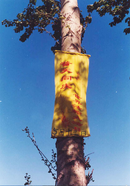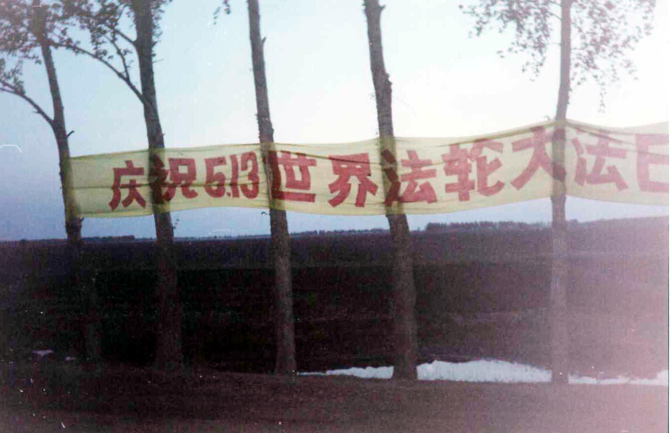 东北某市大法弟子挂横幅庆祝世界法轮大法日