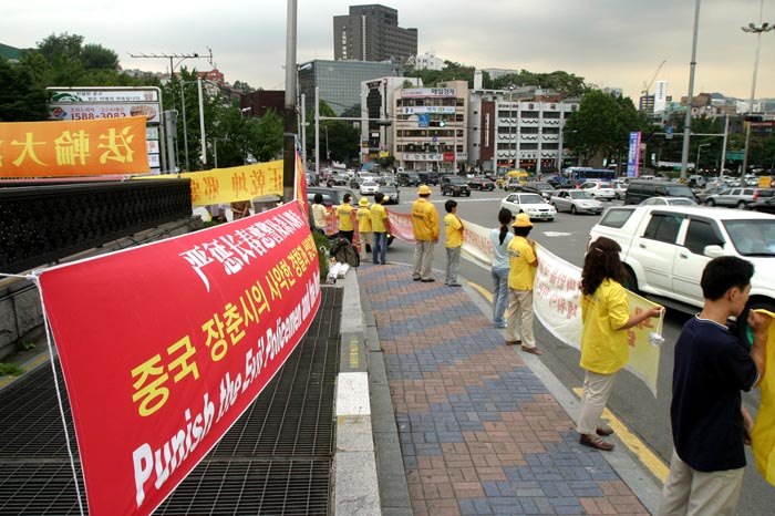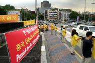 据悉,韩国各地法轮功学员闻讯后也陆续加入了请愿的行列,贾庆林一行走到哪里,他们将跟随到哪里,直到他们离开韩国。