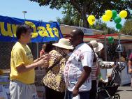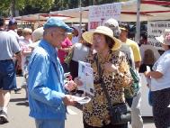 星期六上午10点多,活动刚开始不久,就有两位中国人来到我们的展位,他们听了学员的介绍后说,“太好了!你们要坚持下去。这种精神太好了,要坚持下去!”