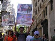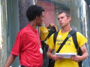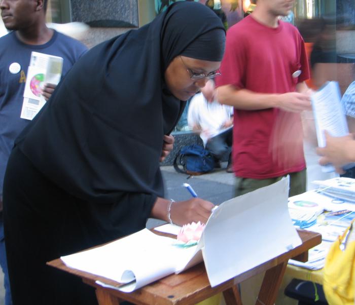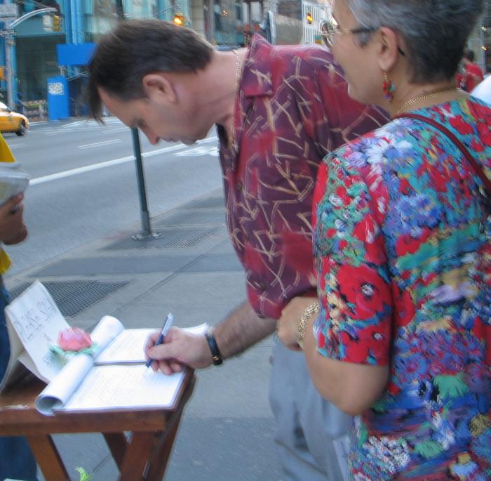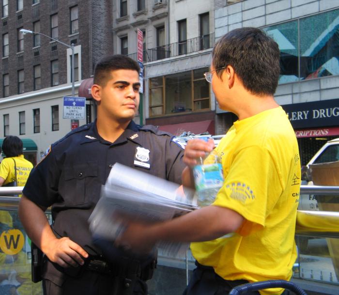 (暂时没有便携展板的外地学员请注意,有些纽约人不拿传单是因为常会遇到有人在街头做商业宣传,或者募捐,他们有戒备心理。如果你告诉他只是请他读一读、知道一下情况,他可能就接受了。)