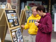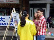 ![]() 从卡尔加里来的年轻人聚精会神听真象 | ![]() 法轮功学员在讲真象 |