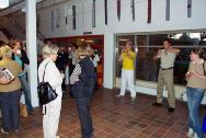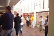 学员应邀给参加演讲会的人们展示功法并介绍法轮功。让来来走走的人们有机会观看法轮功五套有助身心的美好祥和的功法。很多人接受了相关介绍资料,其中包括法轮功在莱荣市炼功点炼功的时间和地点。