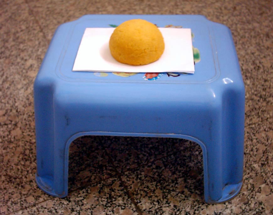 上图中小凳上摆的是沈阳张士教养院和沈阳市司法局新收大队(原地点在张士张士教养院,2002年夏天迁到沈新教养院)学员吃的窝头(俗称“大发”),为玉米混合面。在新收大队,恶警暗示牢头不许给学员吃饱,男学员一顿一个小窝头,两勺菜汤,剩下的干菜和窝头倒入厕所冲掉。学员要承负高强度的奴役劳动,干手工活。如完不成定额吃饭时还要被“掐量”――只给半个小窝头,或干脆不给,饿一顿。沈阳张士教养院的这种饮食导致学员长时间便秘(短的几周长则月余),上厕所还限时、限次,上厕所时间稍长便遭牢头毒打、体罚(罚蹶、蹲等)。