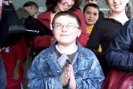 哥伦比亚大学250周年 |  对法轮功修炼心生向往的男孩 |  法律学院的艾米利不时的向驻足停留的人们介绍法轮功 |