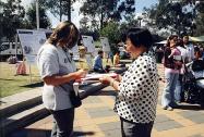 悉尼法轮功学员这是第三次应邀参加这一活动。根据活动的特点学员选择大型的酷刑展板和法轮大法洪传世界的照片展板,效果非常好。许多人来看展板,他们简直不敢相信在今天的中国还有(酷刑迫害法轮功学员)这样的事情发生。他们不断的向学员提问题,学员们也认真的回答他们,当他们明白了真象时就主动拿笔签名呼吁停止迫害。在附近玩的中学生一伙一群的过来看展板并签名。还有许人多马上打听在什么地方可以学功。