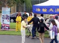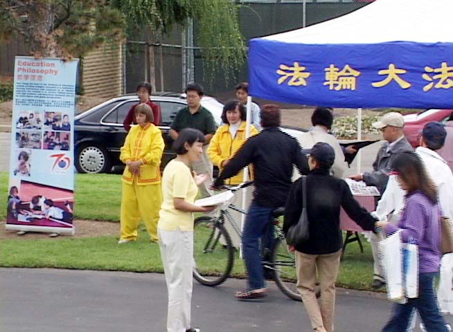 【明慧网2004年9月23日】2004年9月18日和19日,旧金山湾区华人在北加州库柏蒂诺市(Cupertino)的纪念公园(Memorial Park)举行了为期两天、一年一度的“中秋节游园会”。据统计有近十万的湾区居民参加游园会,为了让更多民众了解法轮功,湾区的法轮功学员参加了游园会两天的活动。学员们体会到了解真象后,越来越多的人想学功。