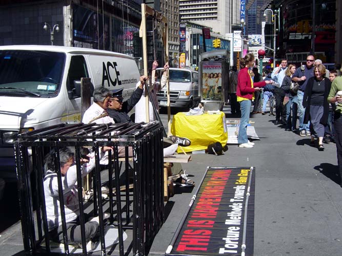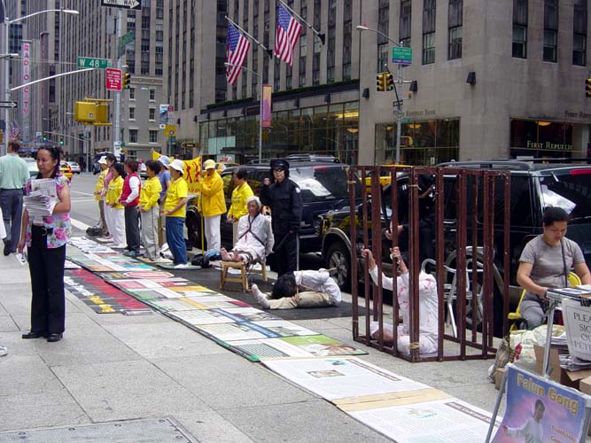 讲清真象的活动包括新闻发布会、酷刑展,参加集市,放电影,真象角,发传单,以及将要举行的勇气长城等。法轮功弟子们分别来自台湾、香港、澳大利亚、新加坡、新西兰、日本、欧洲、加拿大等国家。从美国各地也赶来不少弟子参加这一活动。他们不同肤色,有老有小,有残疾人,还有年轻的母亲以及他们的小宝宝。只是为了可贵的纽约人,他们跨越万水千山,不辞辛劳来到纽约讲真象。