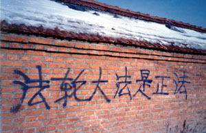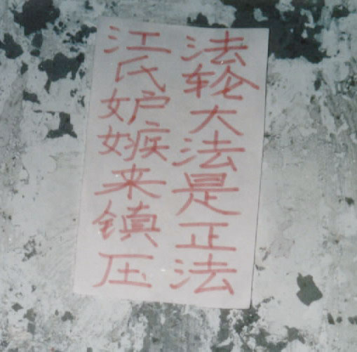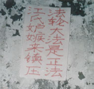 【明慧网2004年9月24日】东北某市大法弟子书写粘贴的大法真象标语、不干胶。