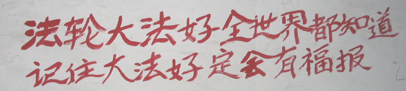 东北某市大法弟子挂横幅庆祝世界法轮大法日